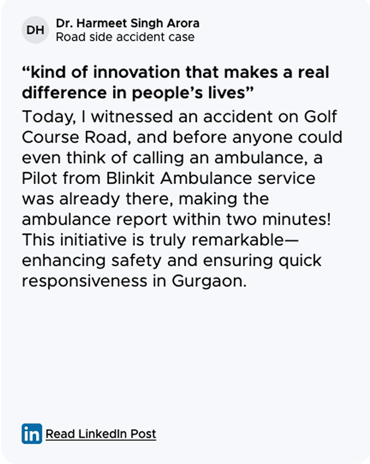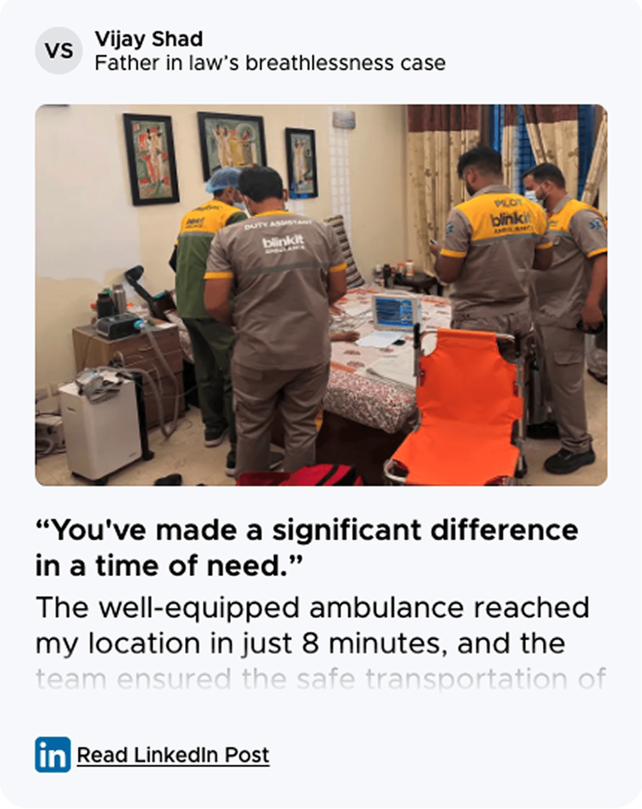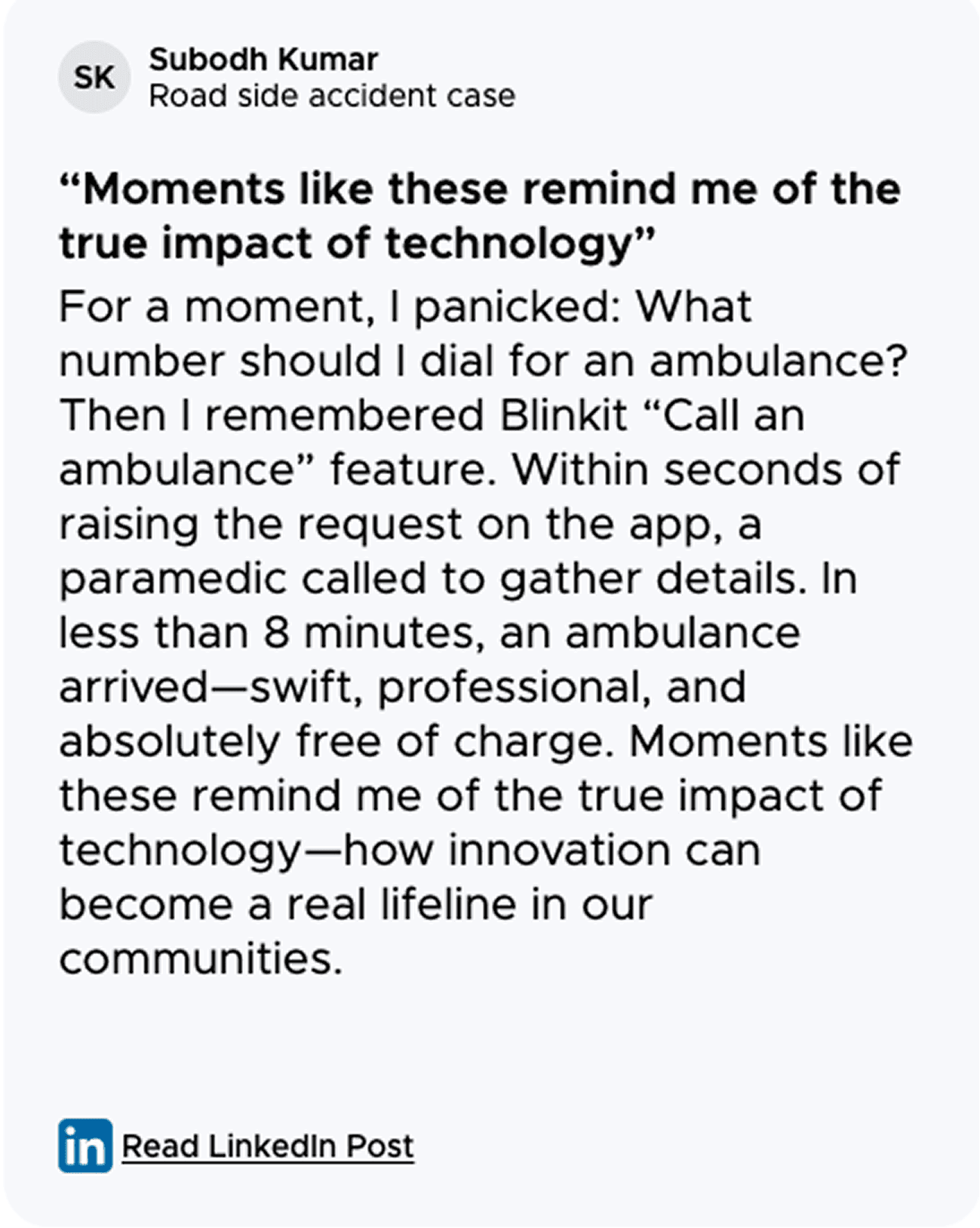 Designed to get Basic Life Support (BLS) ambulances to a user's doorstep within 10 minutes, this initiative marked Blinkit’s most critical last minute use case yet, delivering not groceries, but life-saving help.