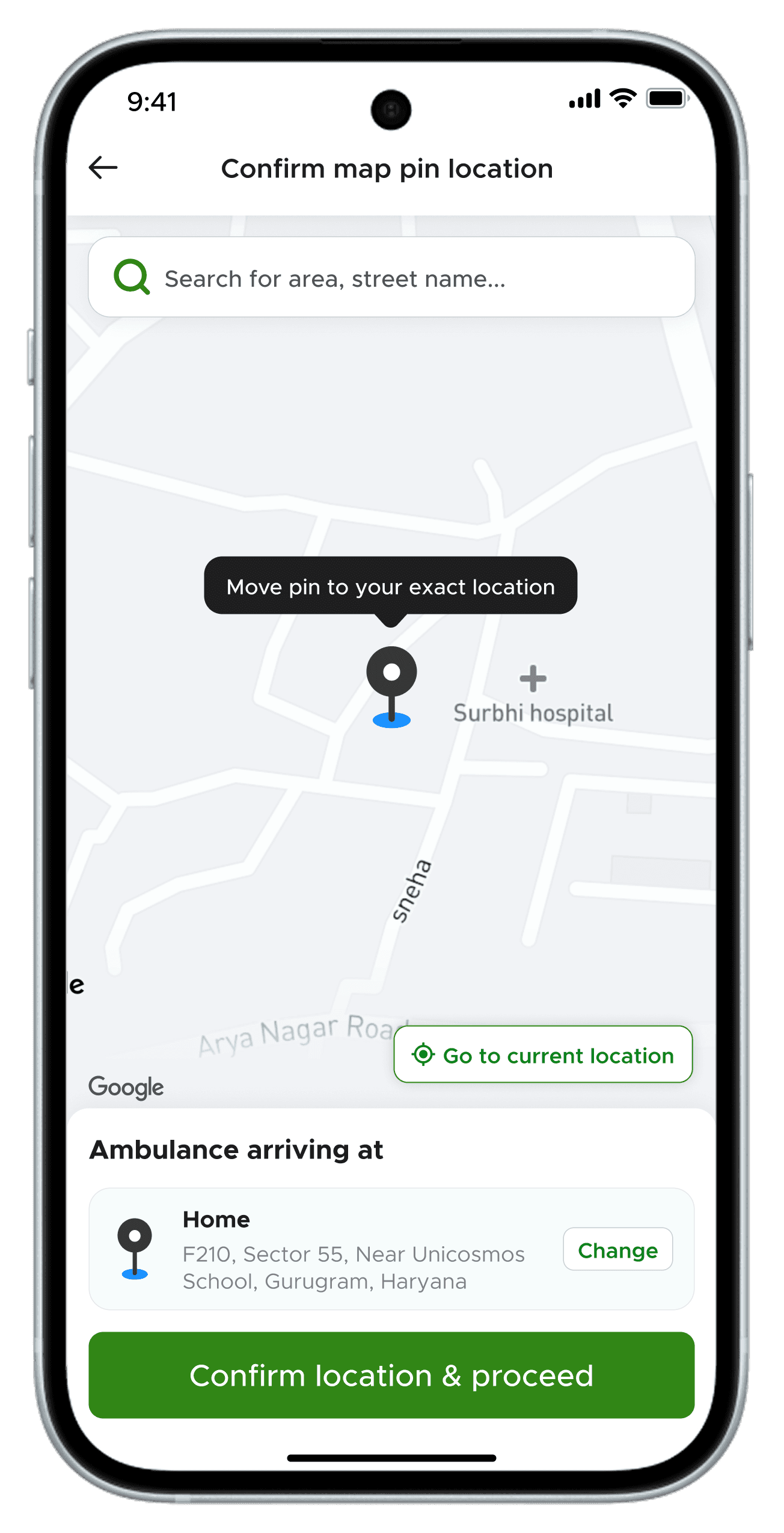 • OTP never arrived — but the verify CTA accepted a blank entry and showed "Awesome! Verified." Broken gate, false security. • Manual text entry for location — no GPS, no map, no auto-fill. User couldn't find their own address in suggestions. • Hospital search truncated — results showed hospitals across India with no city visible. Impossible to identify the right one. • No confirmation artefact — submitted, got "Keep Patience. Team will contact you." No SMS, no call, no record.