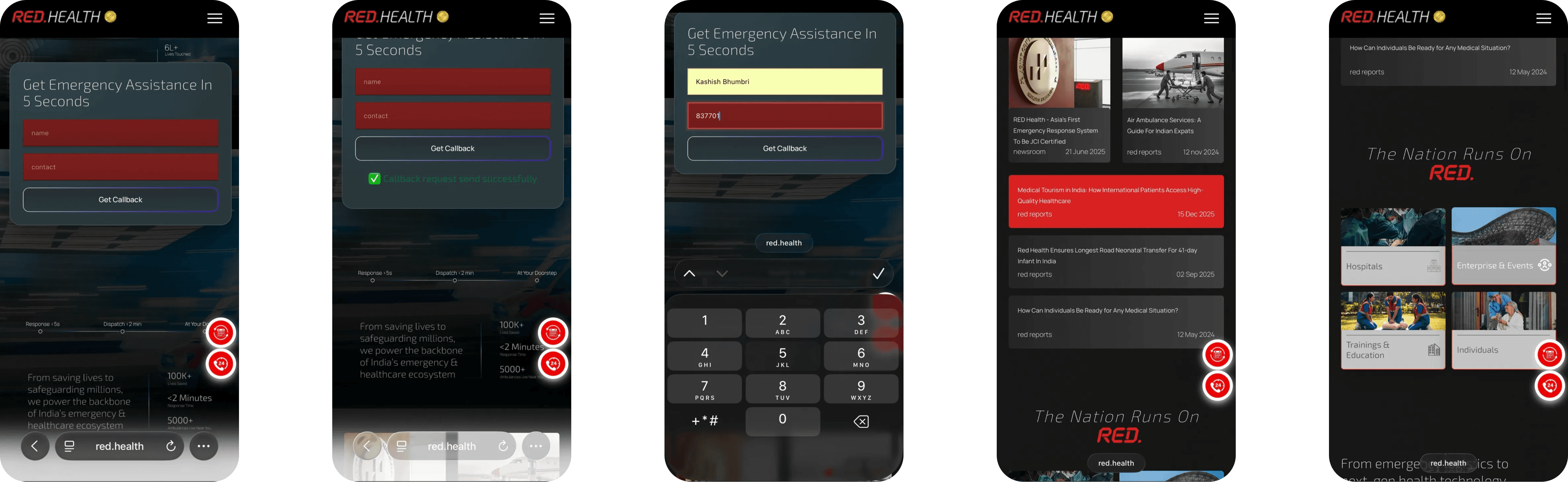 The website is a callback form. The product is a phone call. Everything the user needs — pricing, ambulance type, tracking — is revealed verbally, after they've already waited